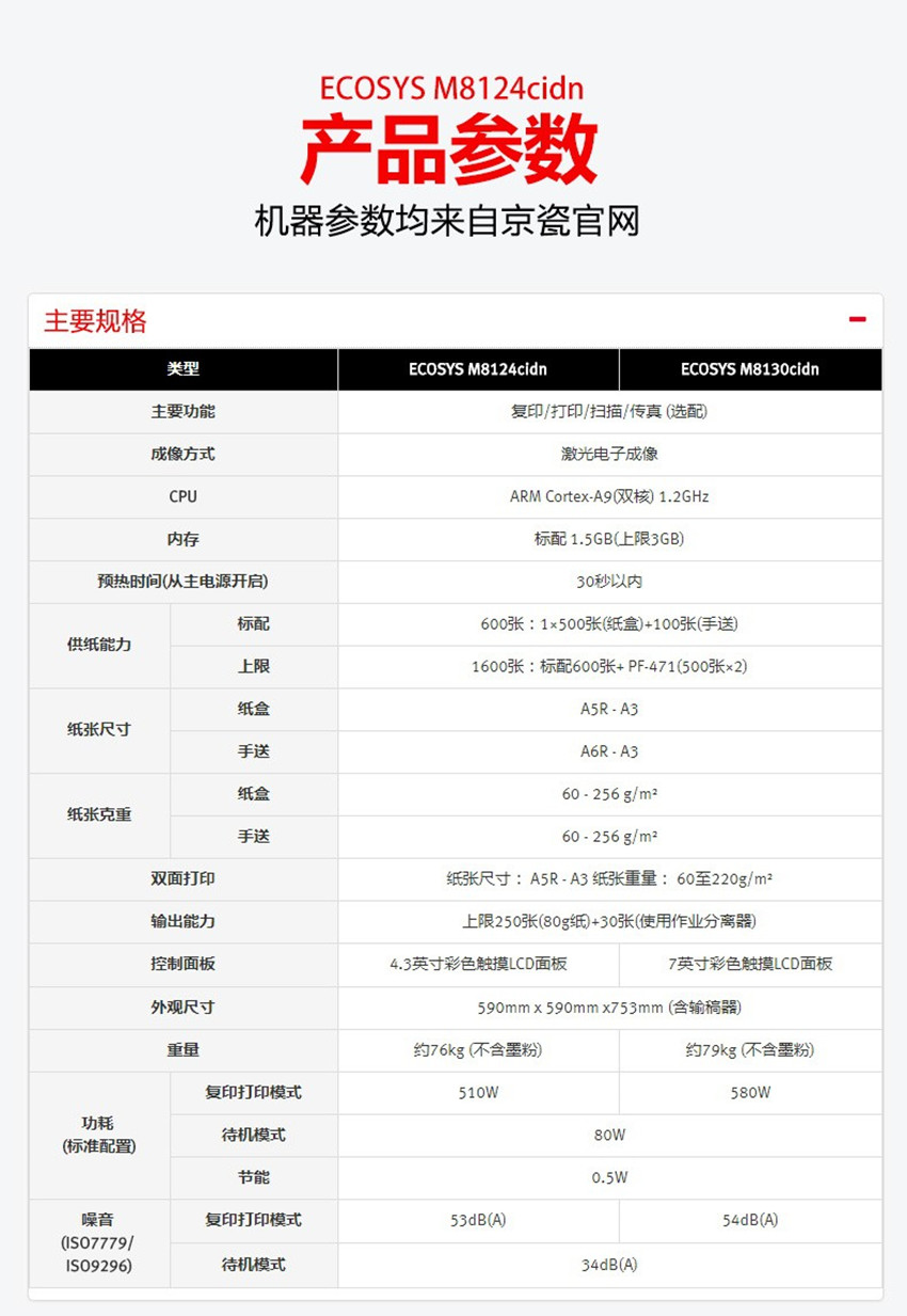 KYOCERA 京瓷 M8124cidn A3彩色多功能打印机